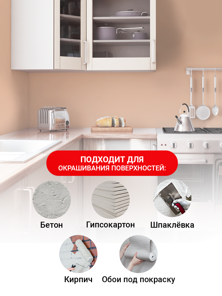 СохранитьКраска акриловая влагостойкая для помещений с повышенной влажностью MASTERFARBE, персиковый, 3 кг интересное: