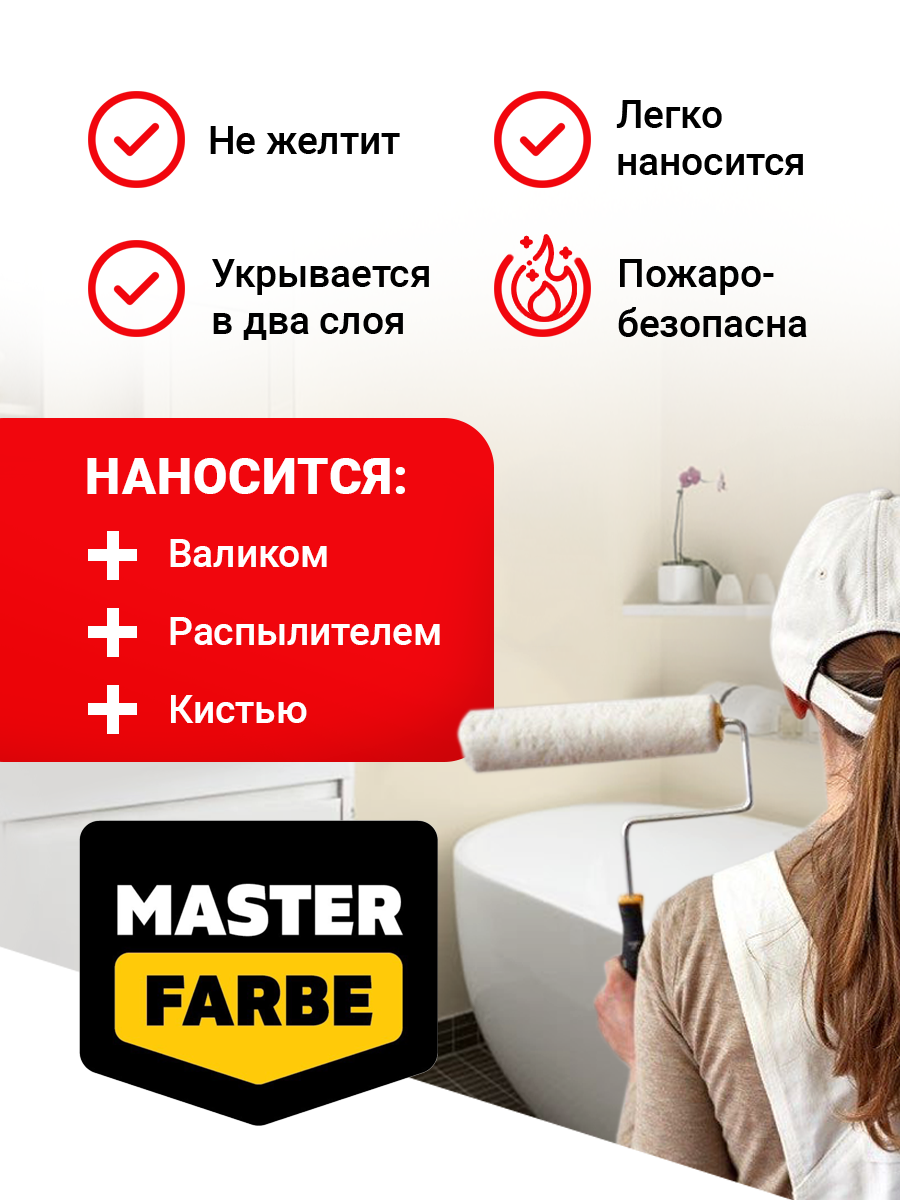 Краска влагостойкая для помещений с повышенной влажностью MASTER FARBE, слоновая кость, 14 кг