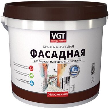 Краска фасадная VGT "Белоснежная", краска для фасадов, краска для стен, 7 кг