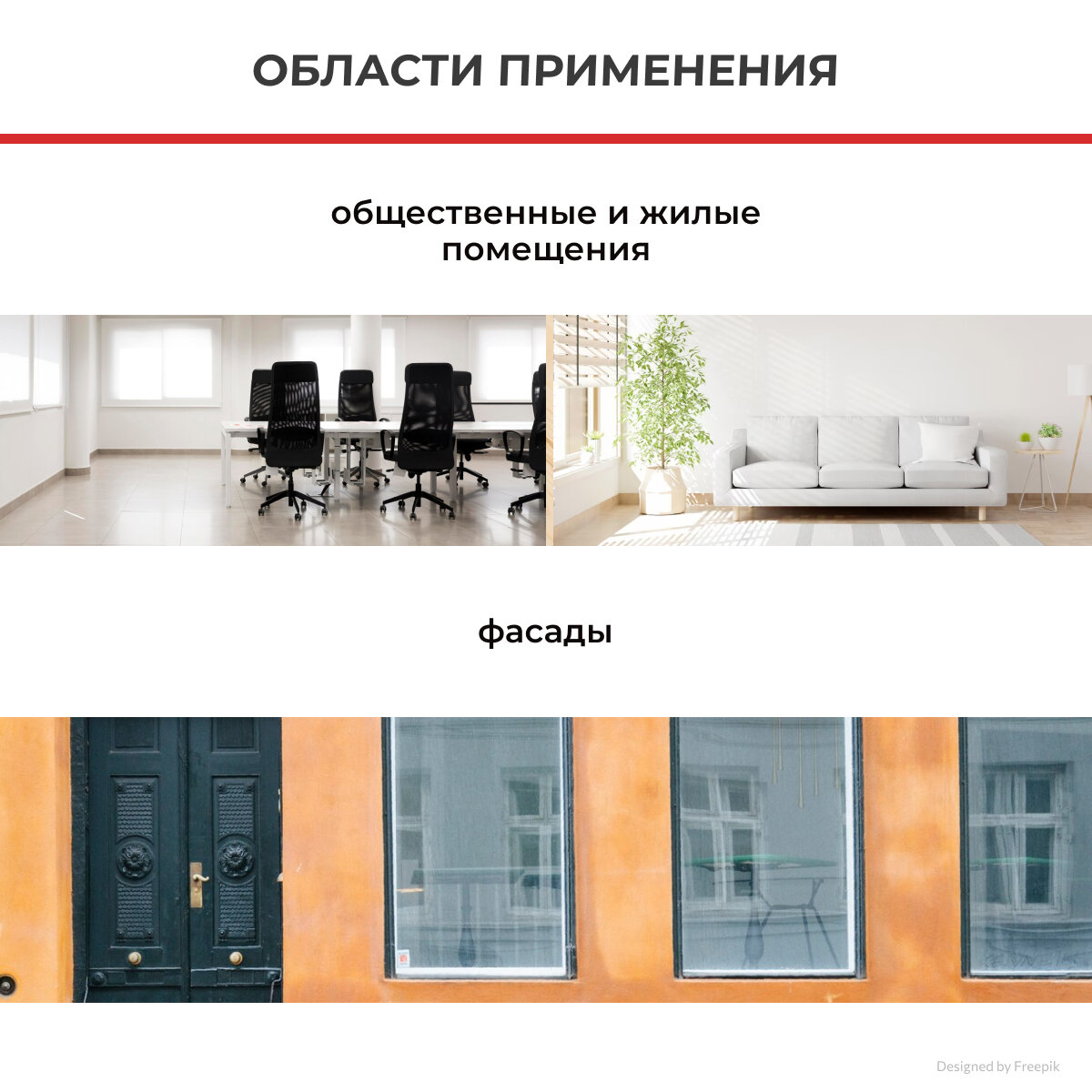 | Область применения | для влажных помещений / для пола / для потолков / для радиаторов / для стен / для фасадов / универсальная |