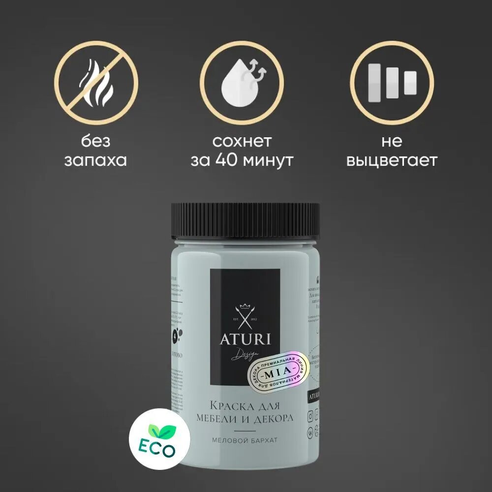Краска Aturi Design Mia для мебели и декора, кухни и кухонных фасадов, дверей, пластика и металла; Набор, 400гр х 2 шт; Цвет: Сензария