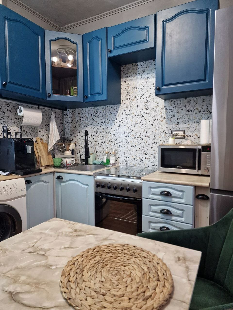 Набор 2 шт по 0,4 кг. Матовая краска для мебели без запаха, меловая быстросохнущая Aturi Design для декора, кухни и кухонных фасадов, дверей, пластика и металла. Цвет: Стальной взгляд, синий
