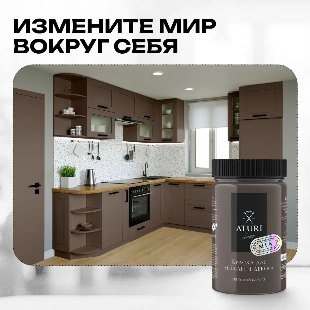 Набор 3 шт по 0,4 кг. Матовая краска для мебели без запаха, меловая быстросохнущая Aturi Design для декора, кухни и кухонных фасадов, дверей пластика и металла. Цвет: Крепкий кофе, темно коричневый