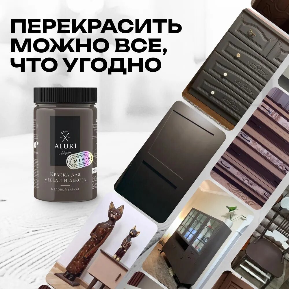 Краска для мебели и декора Aturi Design Mia меловая. Цвет: Черный бархат. Матовая, 0,4 кг, Черный Без запаха.