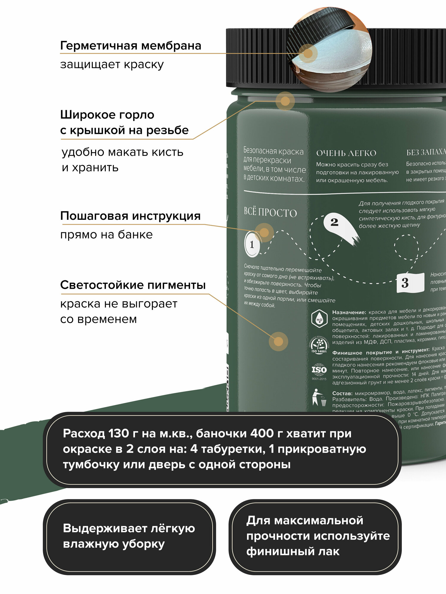 Меловая краска Aturi Design Mia, для мебели и декора, кухни и кухонных фасадов, дверей, пластика и металла, меловой бархат, без запаха, меловая быстросохнущая мебельная матовая 0,4 кг Цвет: Британский зеленый, темно-зеленый