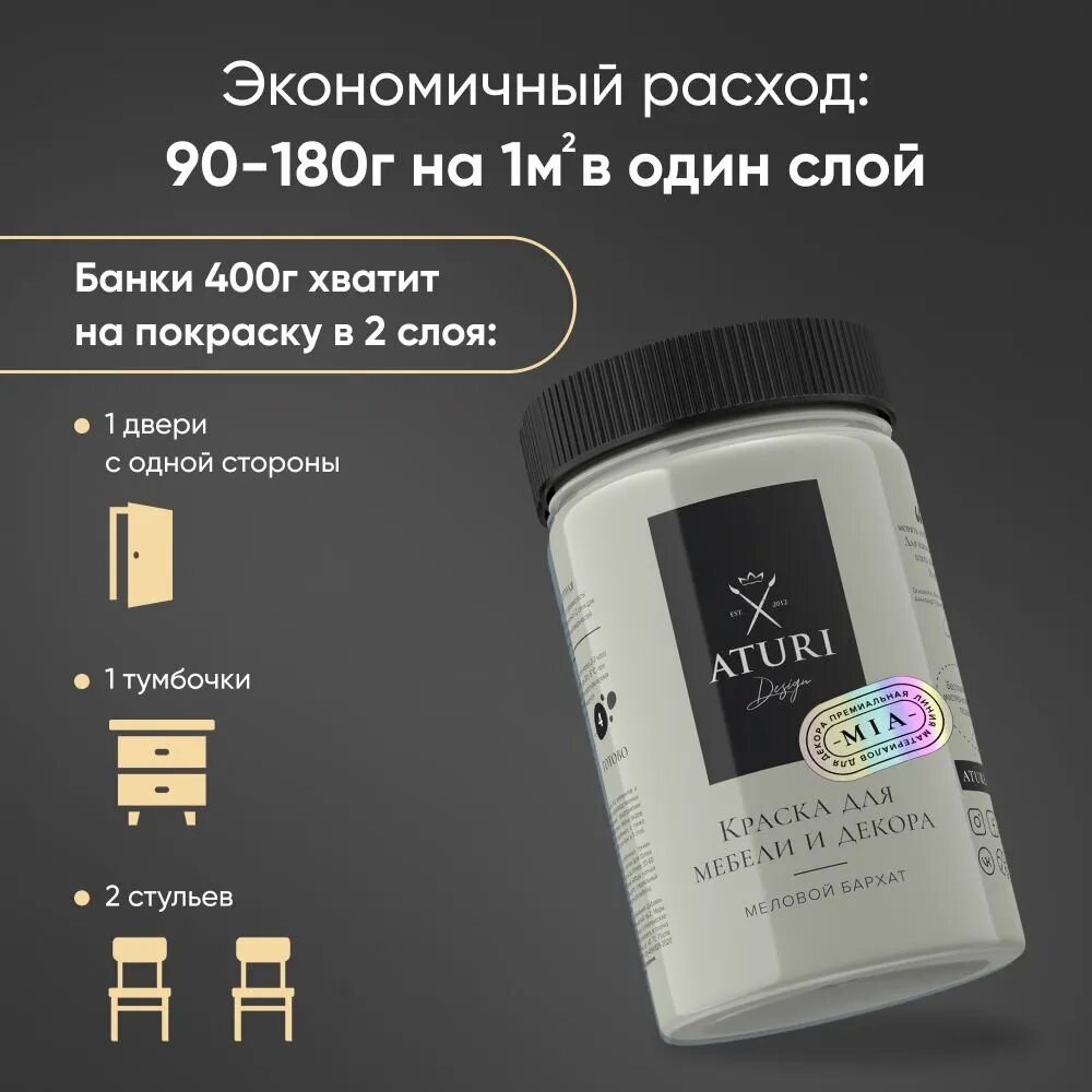 Набор 2 шт по 0,4 кг. Матовая краска для мебели без запаха, меловая быстросохнущая Aturi Design для декора, кухни и кухонных фасадов, дверей, пластика и металла. Цвет: Черный бархат, чёрный