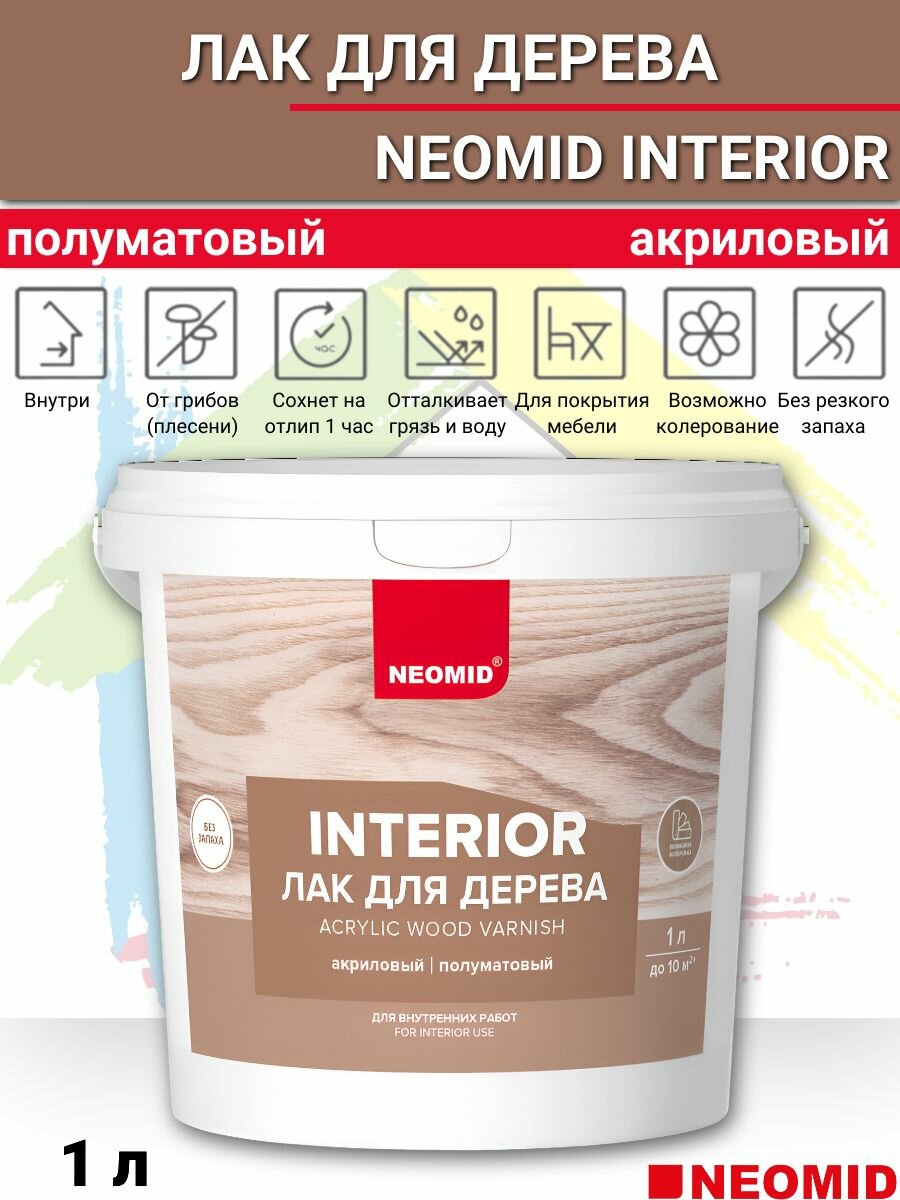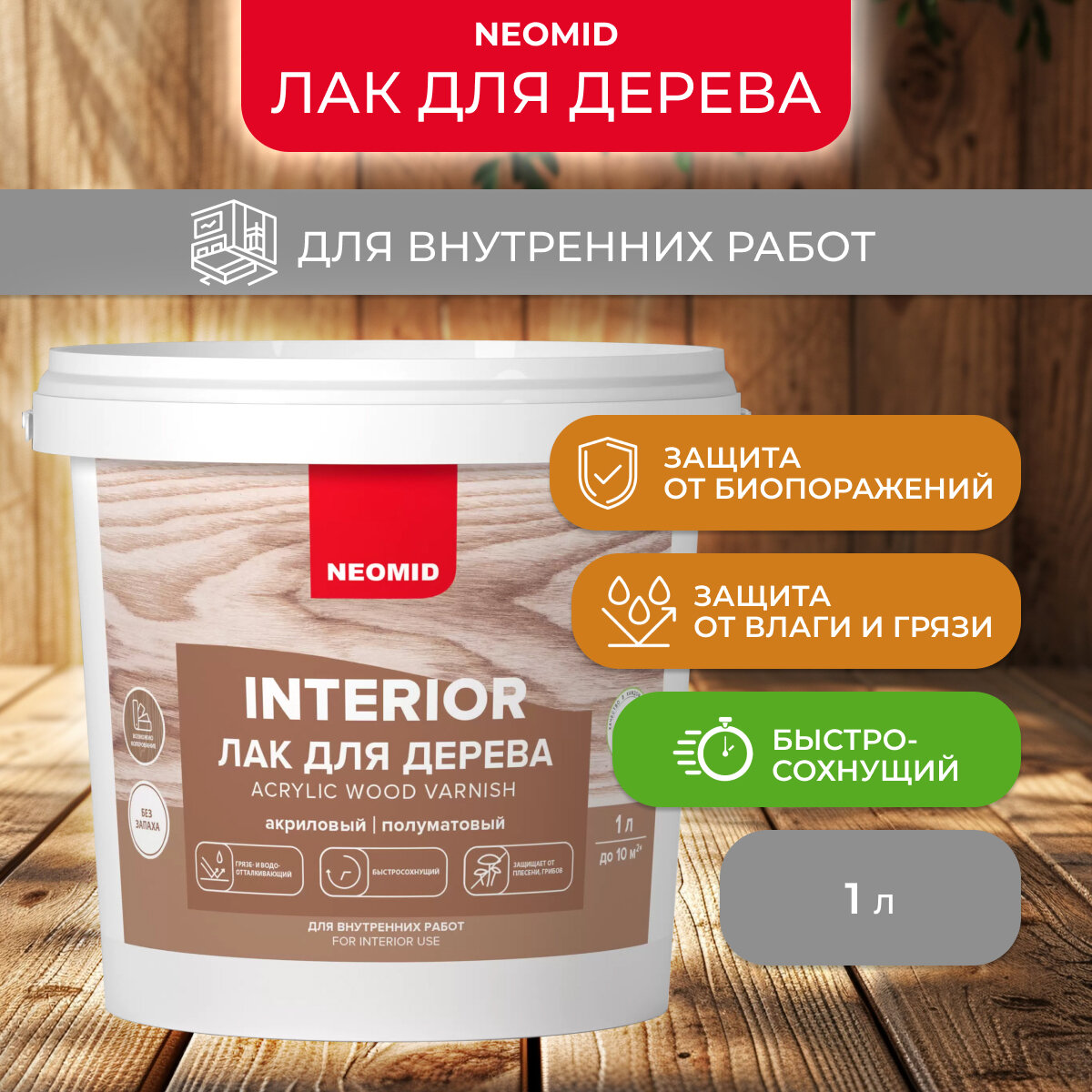 Лак акриловый интерьерный для дерева без запаха NEOMID INTERIOR Бесцветный (1 л) / Защищает от грибов и плесени