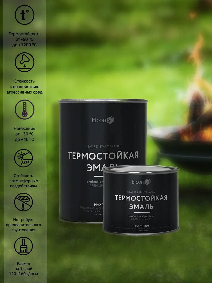Эмаль Термостойкая Elcon Max Therm 0.8кг 600°С Антрацит, Антикоррозионная для Защитной Окраски Печей, Котлов, Металлического Оборудования / Элкон.