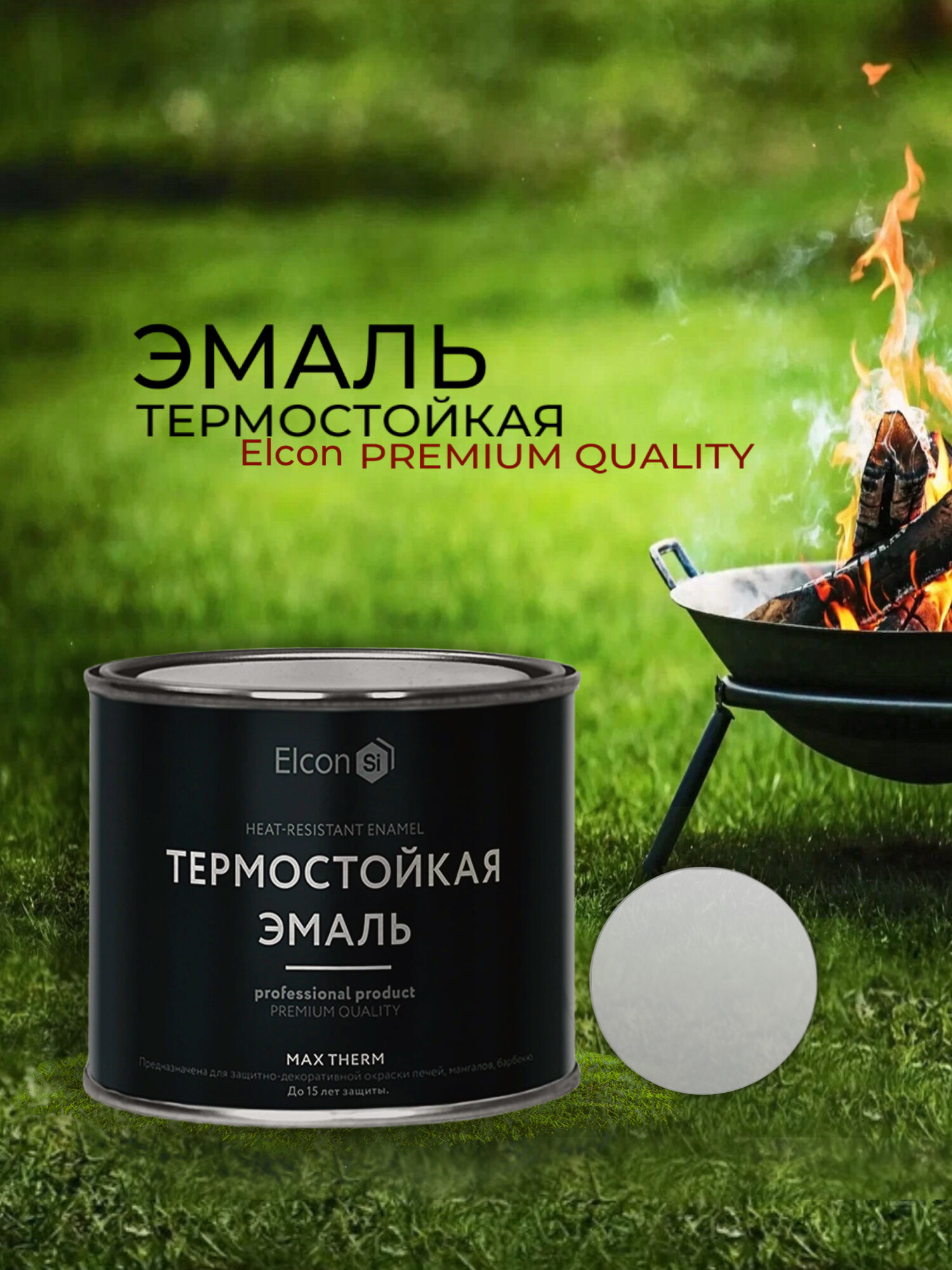 Купить Термостойкая эмаль Elcon серебристая, матовая, по металлу, кирпичу, бетону, до 700 °С 0,4 л