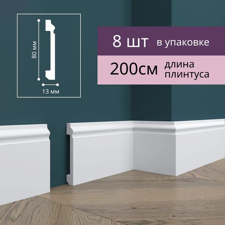 Плинтус Де-Багет напольный ударопрочный Н80 80х13х2000 мм, белый ( 8 штук ) интересное: