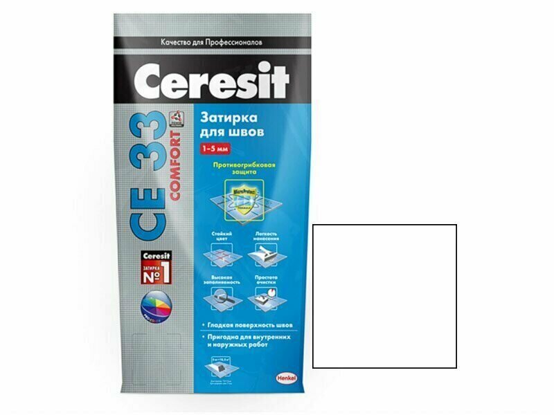 Затирка для швов цветная CE 33 CERESIT белый, 2 кг, сухая смесь интересное: