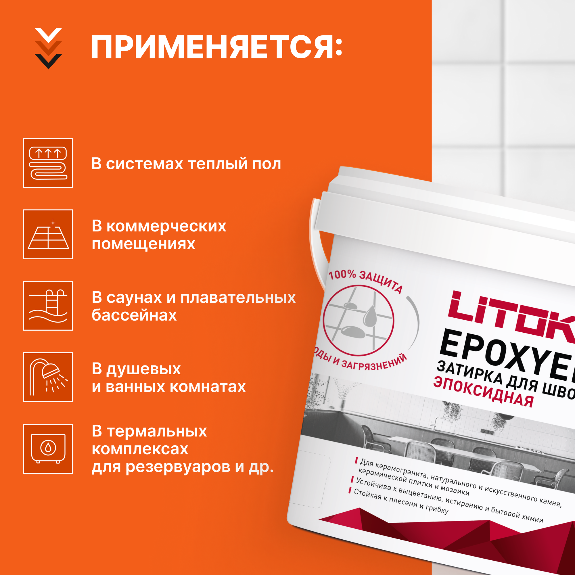 | Область применения | бассейны, для ванной комнаты, для внутренних работ, для герметизации угловых швов и стыков, для затирки швов, для кухни, для наружных работ, для пола, для производственных помещений, для стен, для теплого пола, искусственный камень, керамическая плитка, керамогранит, клинкерная плитка, мозаика, натуральный камень, прозрачная и полупрозрачная плитка, террасы и балконы, фасад |