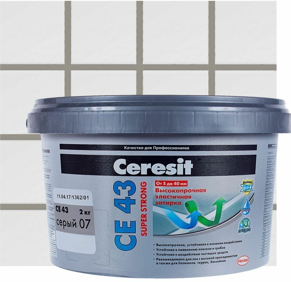 Ниже Вы можете прочитать отзывы на Церезит СЕ 43 затирка водоотталкивающая серая (2кг) / CERESIT CE-43 Super Strong эластичная затирка водоотталкивающая противогрибковая серая (2кг), ознакомится с подробными характеристиками, посмотреть интересные обзоры и фотографии на Церезит СЕ 43 затирка водоотталкивающая серая (2кг) / CERESIT CE-43 Super Strong эластичная затирка водоотталкивающая противогрибковая серая (2кг).