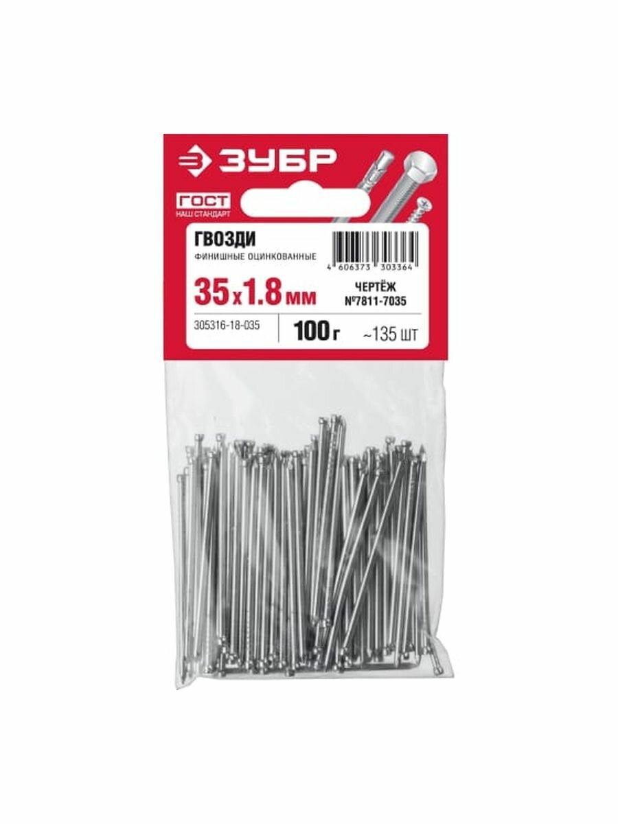 ЗУБР 35 x 1.8 мм, цинк, 100 г, финишные гвозди (305316-18-035)