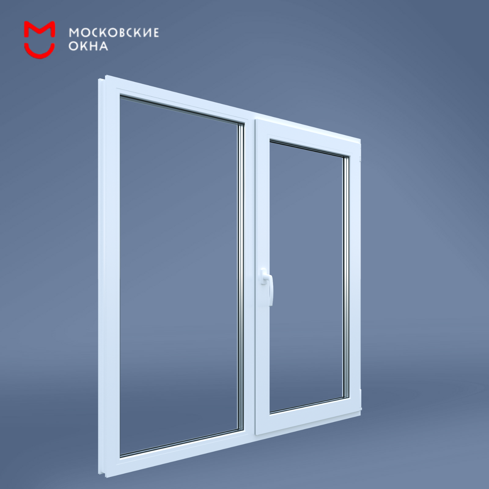 Пластиковое двухстворчатое окно ПВХ РЕХАУ BLITZ 1200х1200 мм с глухой и поворотно-откидной створками с двухкамерным стеклопакетом