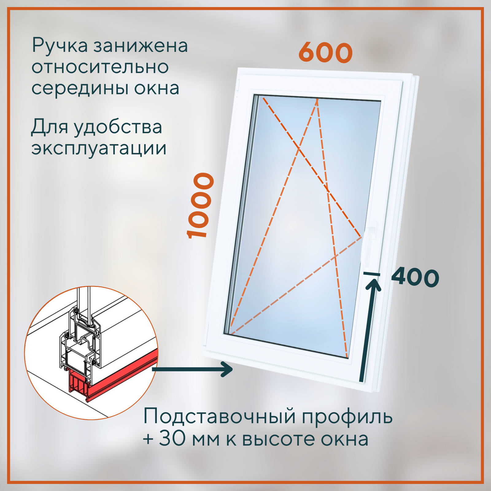 СохранитьПластиковое окно 1000х600 мм (ВхШ) РЕХАУ Blitz, поворотно-откидное, белое интересное: