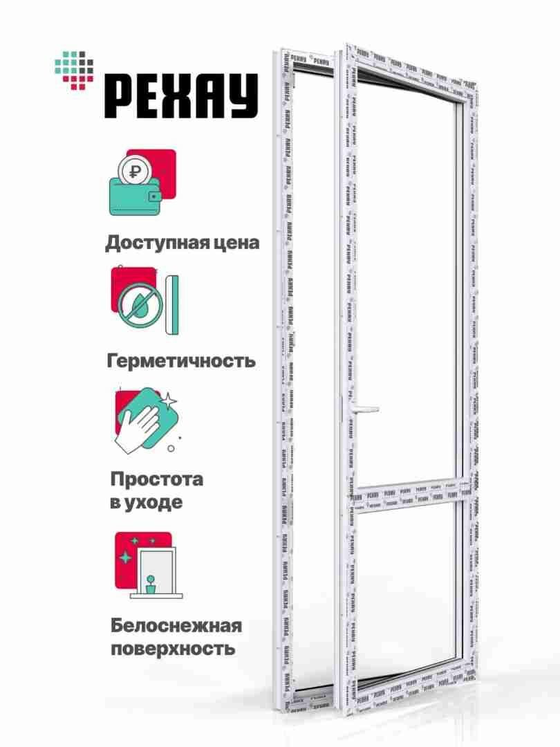 Пластиковая дверь ПВХ балконная РЕХАУ 2180х670 мм (ВхШ), правая, двухкамерный стеклопакет, белая