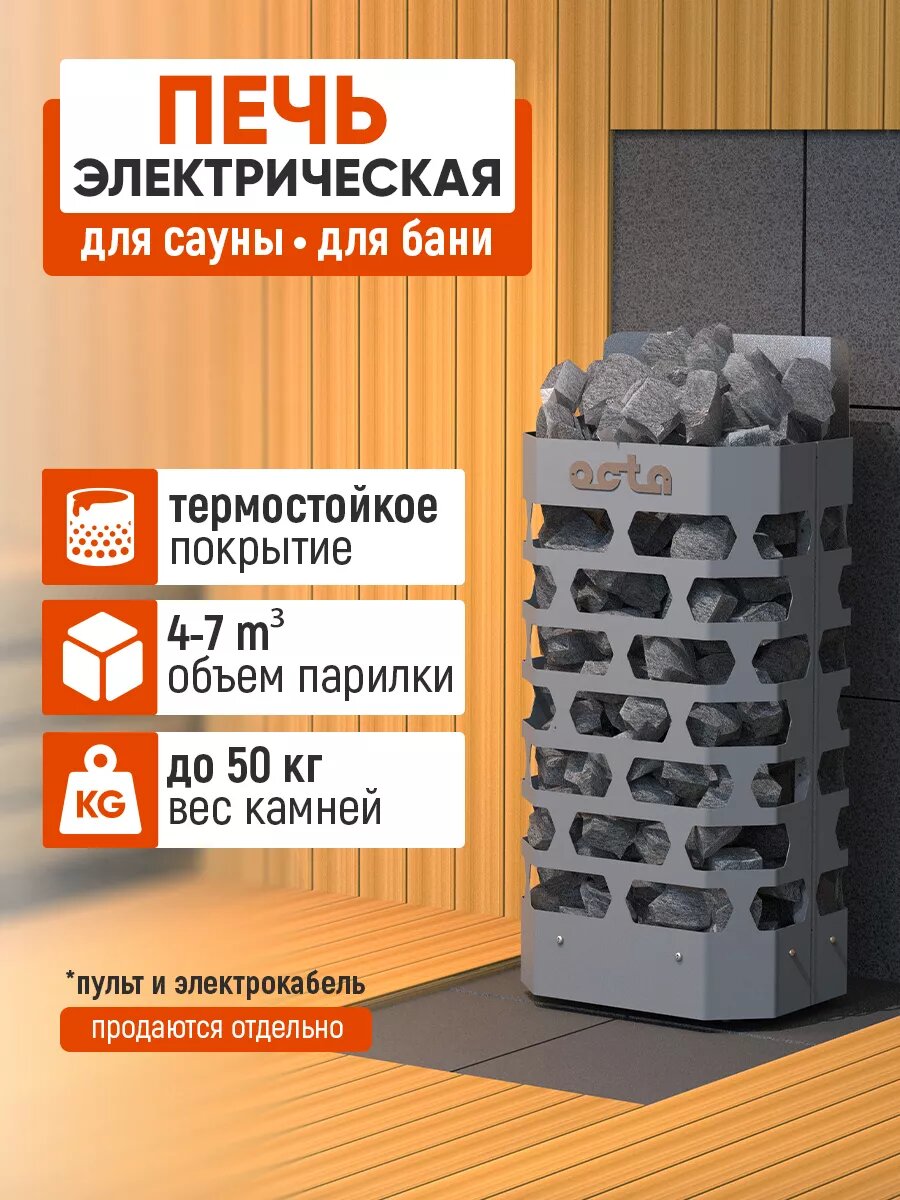 Печь электрическая (электрокаменка) для сауны и бани стэн "Octa" 4кВт, нержавеющая сталь