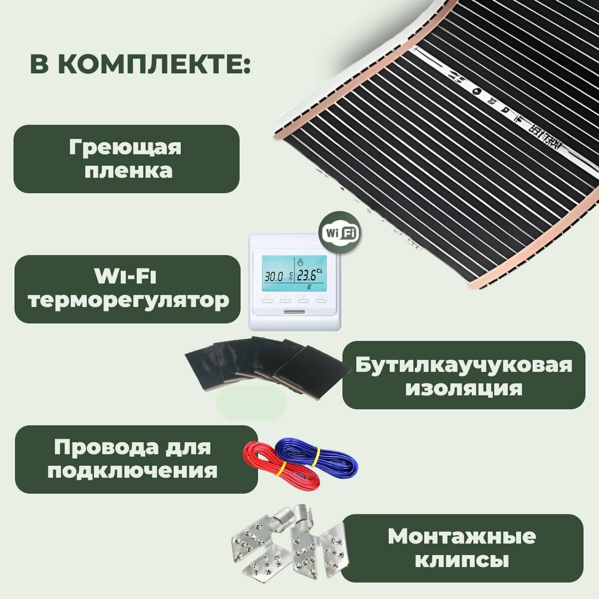 Пленочный теплый пол 13 м.п. комплект ширина 80см с Wi-Fi терморегулятором