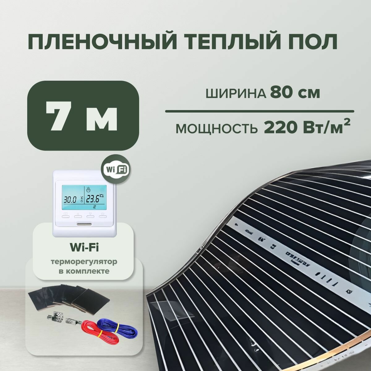 Пленочный теплый пол 7 м.п. комплект ширина 80см с Wi-Fi терморегулятором