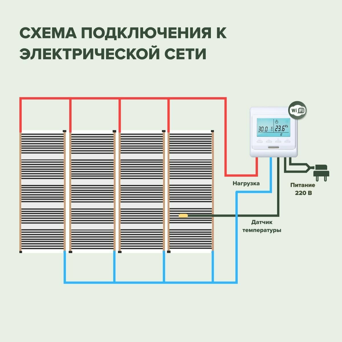 Пленочный теплый пол 9 м.п. комплект ширина 80см с Wi-Fi терморегулятором