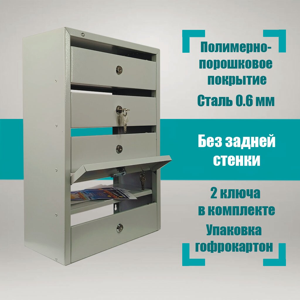 Почтовый ящик "Оптима Компакт" 5-секционный серый, без задней стенки, узкий для многоквартирных домов интересное: