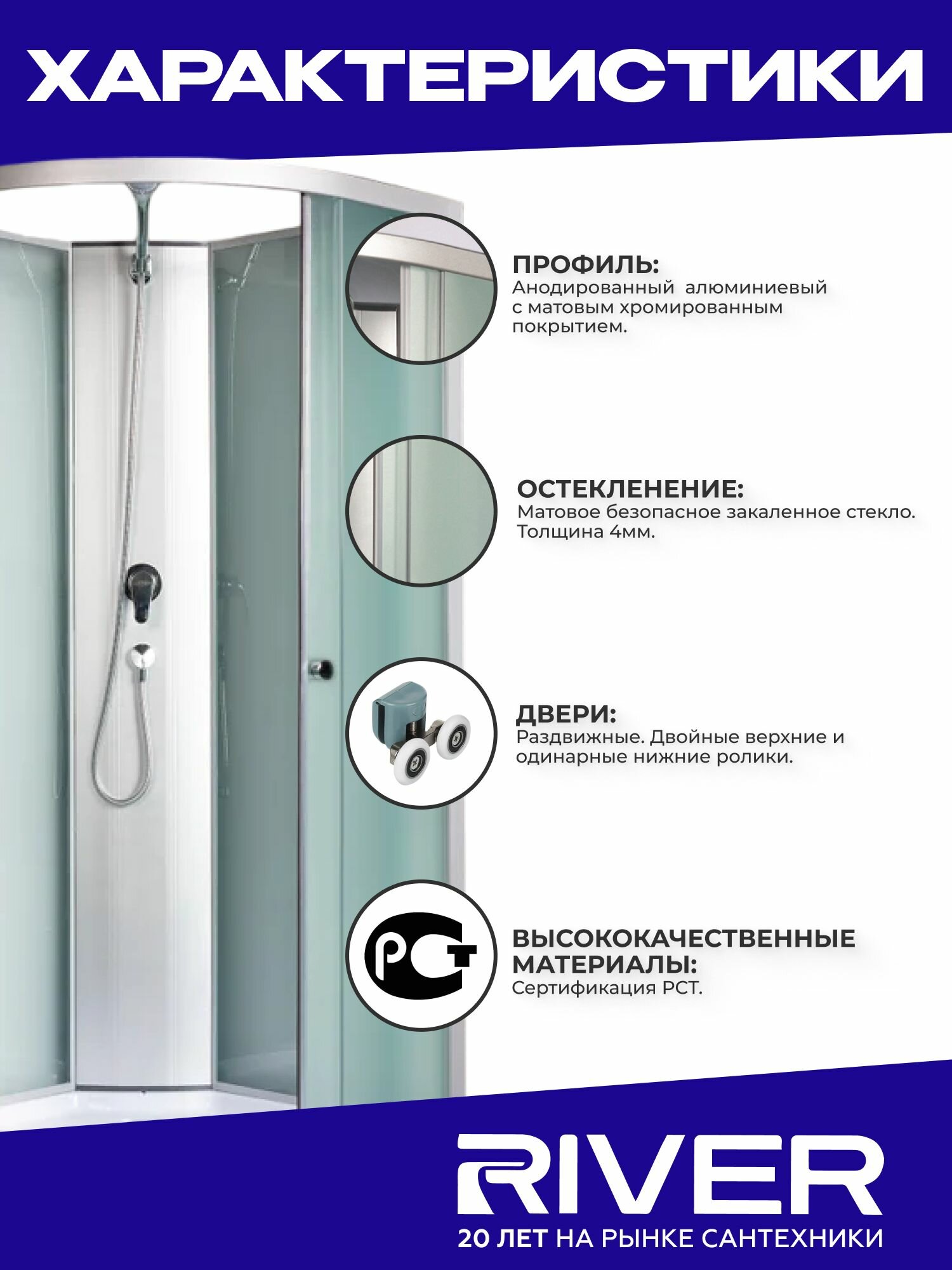 Душевая кабина River NARA LIGHT Б/К (90x90) низкий поддон, стекло матовое, универсальная интересное: