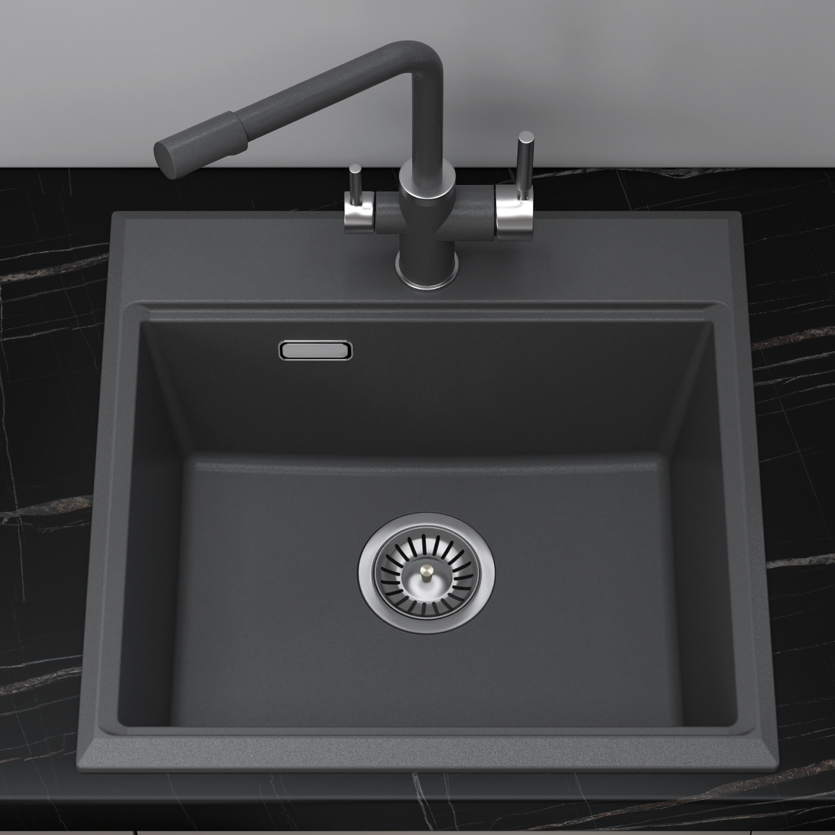 Врезная кухонная мойка Comfort 52х50 см, кварцевая, квадратная, цвет Базальт, модель 5202