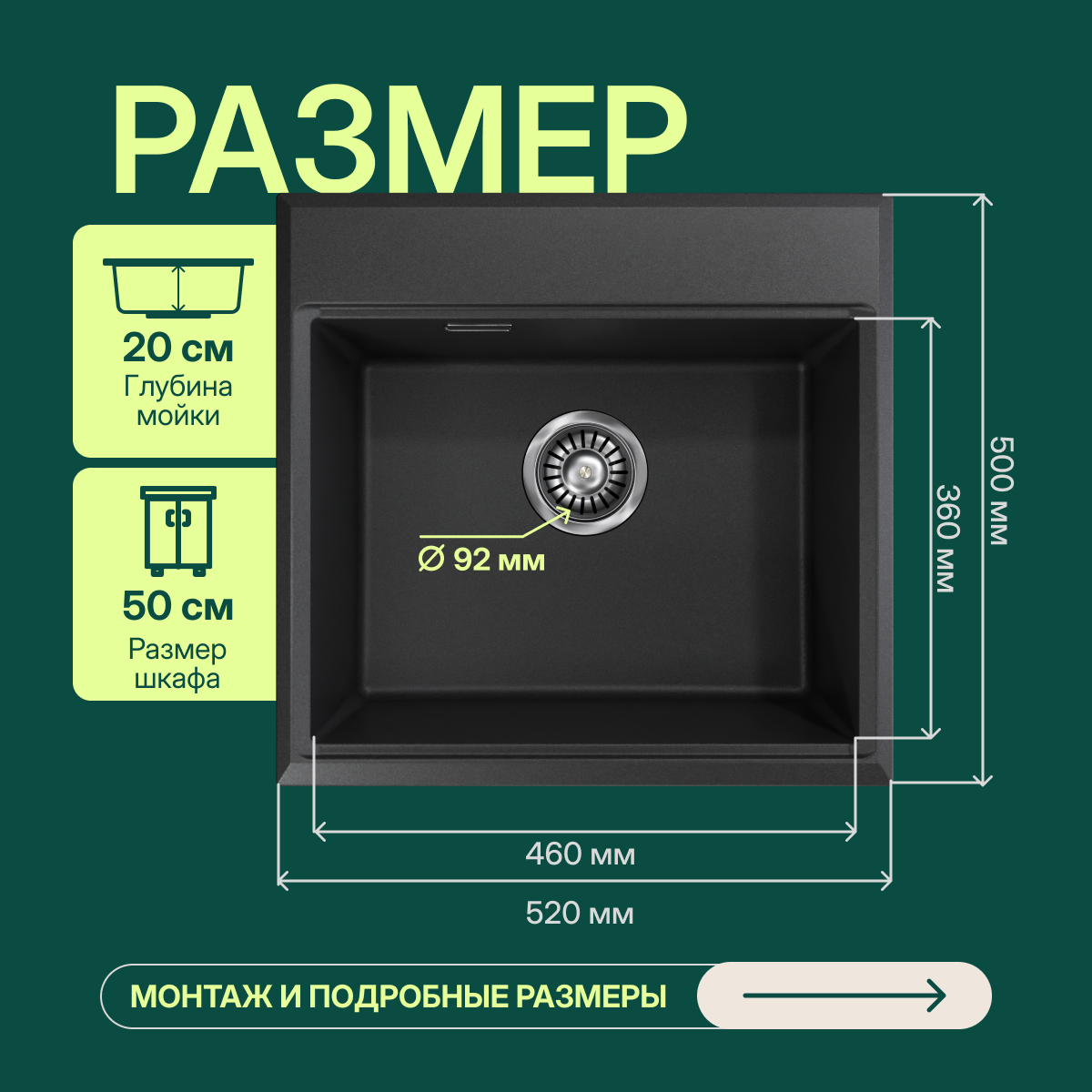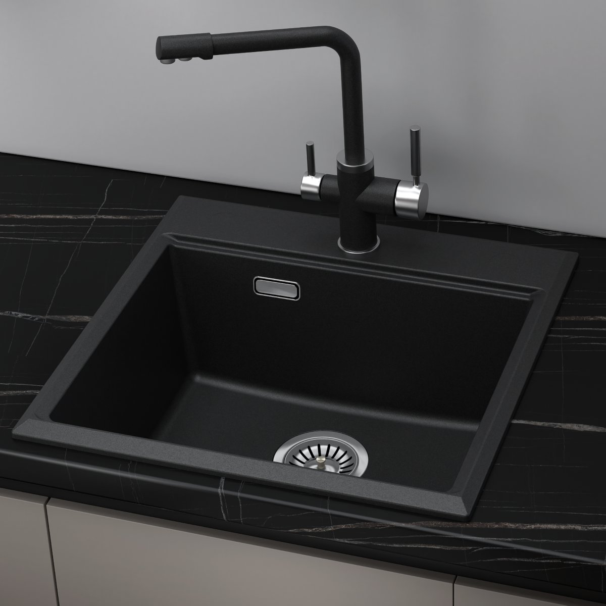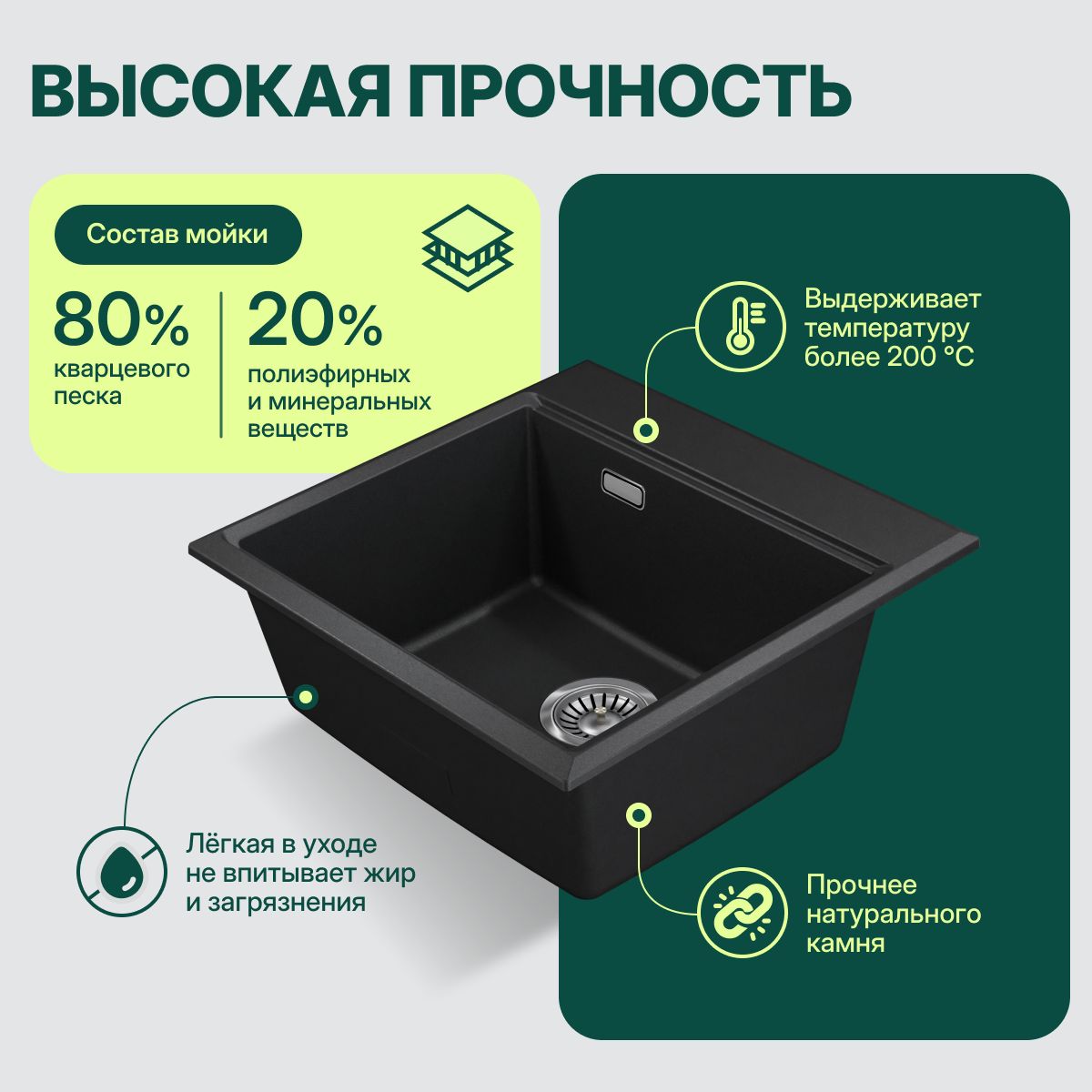СохранитьКухонная мойка каменная Comfort 5202 Черная кварцевая квадратная врезная интересное: