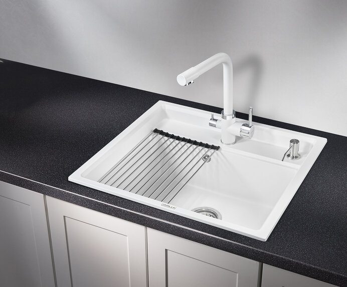 KS-6003, арктик (белый), кухонная мойка, кварц