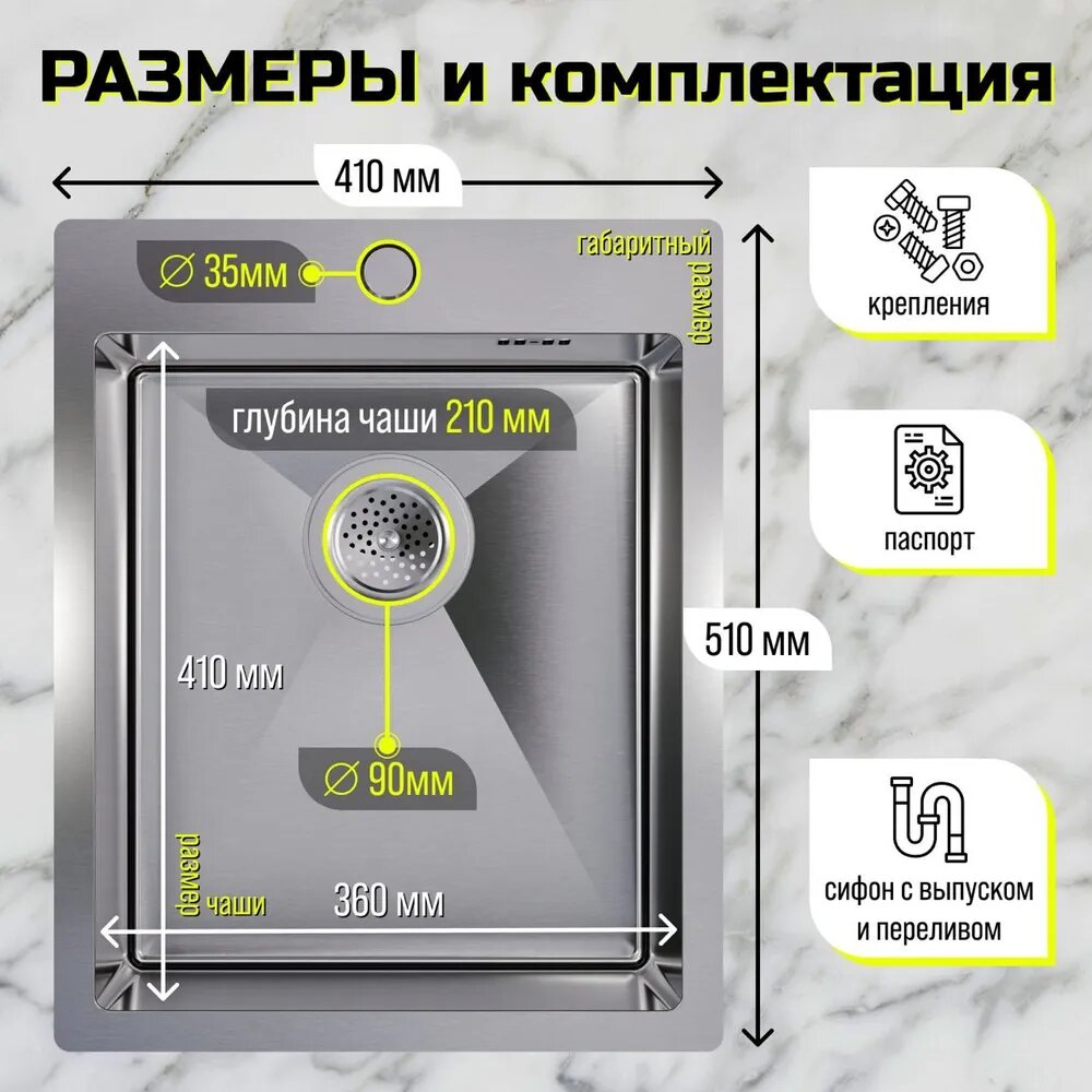 | Дополнительная информация | Толщина бортов мойки 3 мм, толщина чаши 0.8 мм |