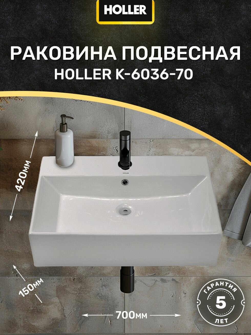 Раковина подвесная HOLLER K-6036-70 (700*420*150мм), белая