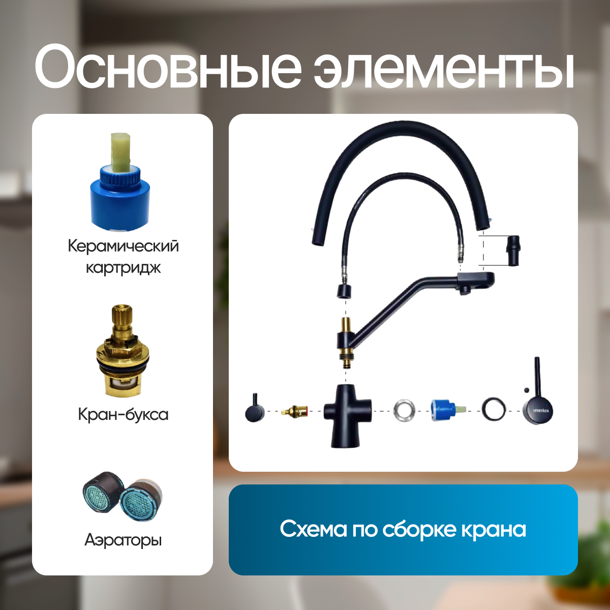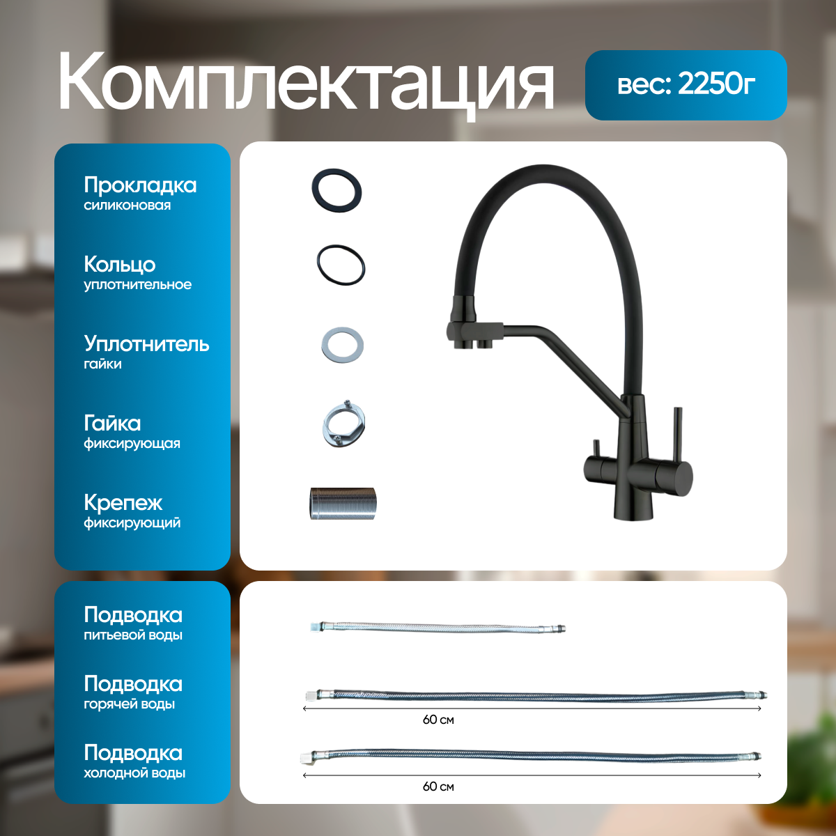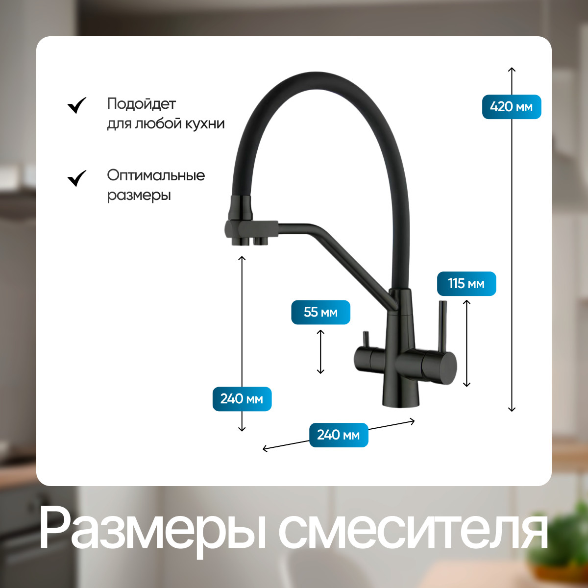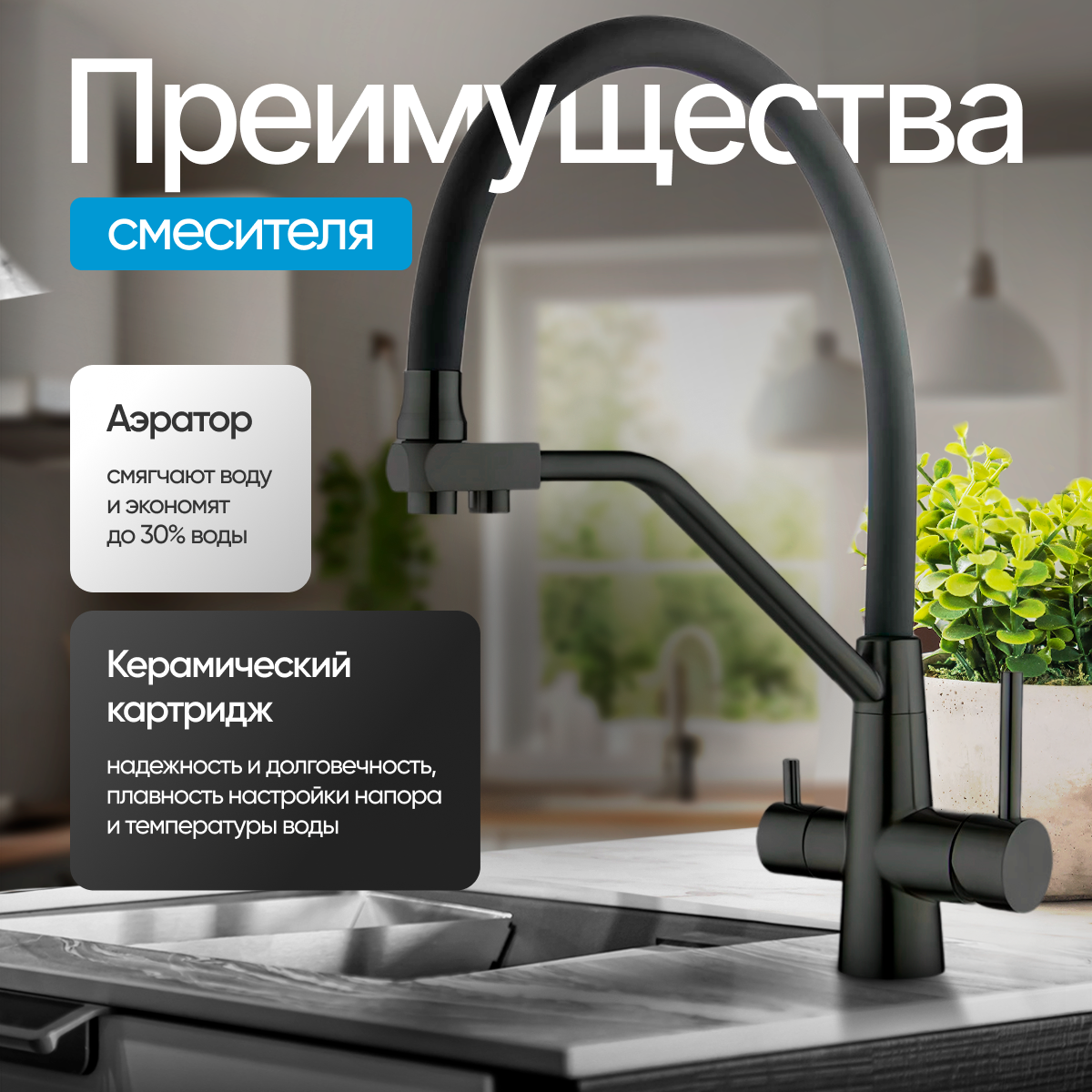 Смеситель для кухни Smesico SMC-100 с гибким изливом под фильтр для питьевой воды, черный, матовый, нержавеющая сталь интересное: