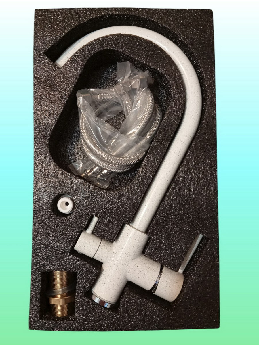 Смеситель для кухни с по подключением к фильтру для питьевой воды GMP, белый гранит
