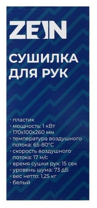 Сушилка для рук ZEIN Hd=227 White, 1 кВт, 170×100×260 мм, белая интересное: