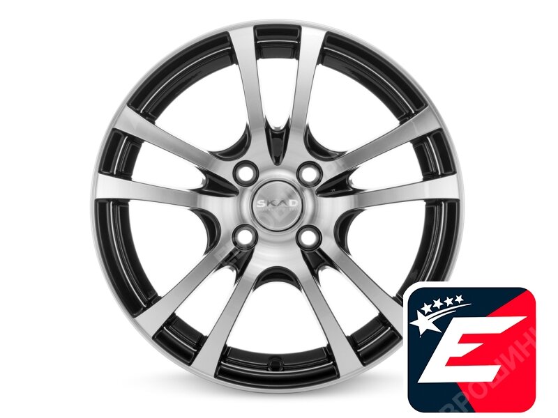 Литые колесные диски SKAD (СКАД) Дели 6x15 4x100 ET50 D60.1 Чёрный глянцевый с полированной лицевой частью (3140405)