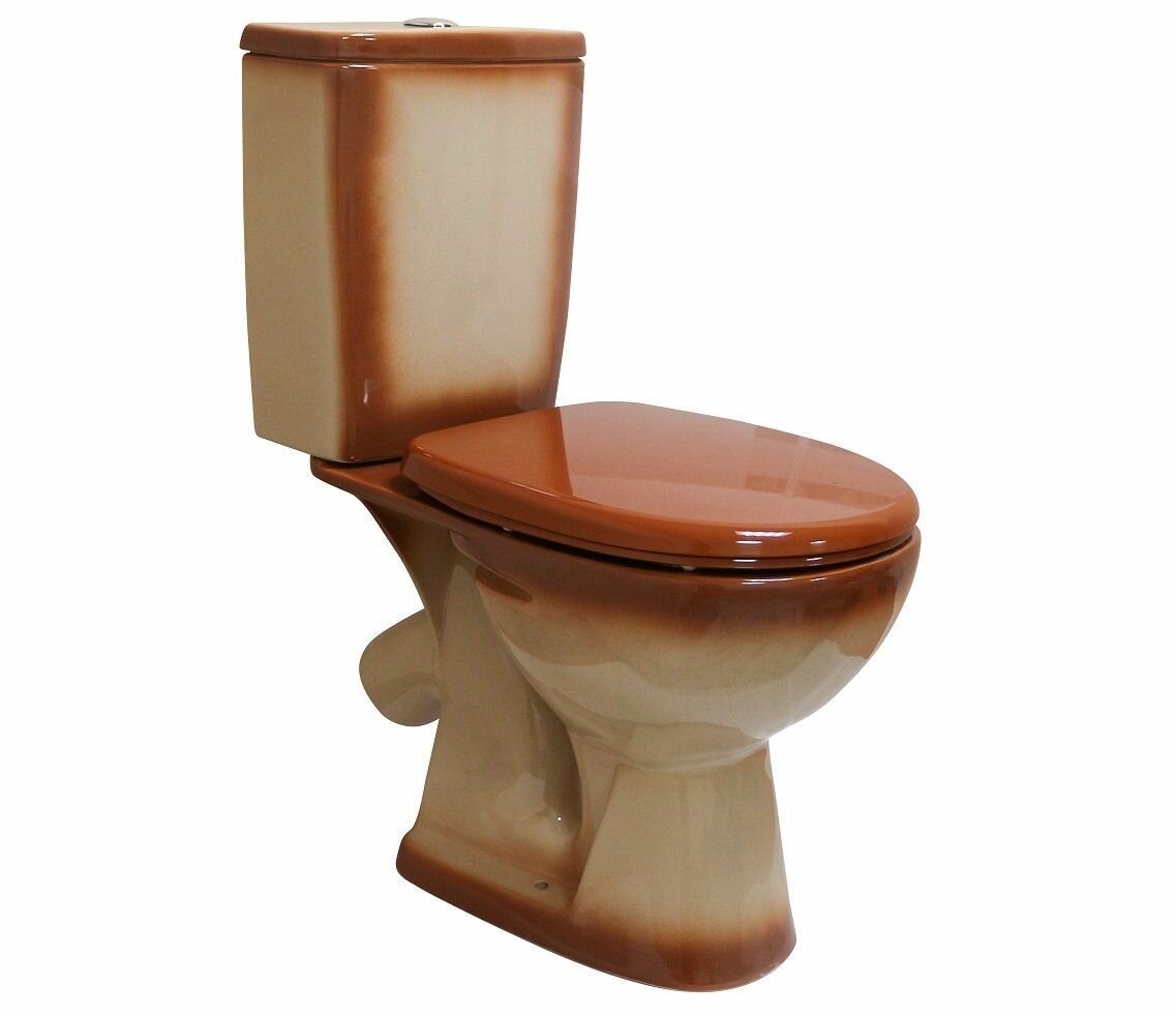 Унитаз-компакт напольный с бачком УЮТ коричневый косой выпуск, 2-х реж. арм. интересное: