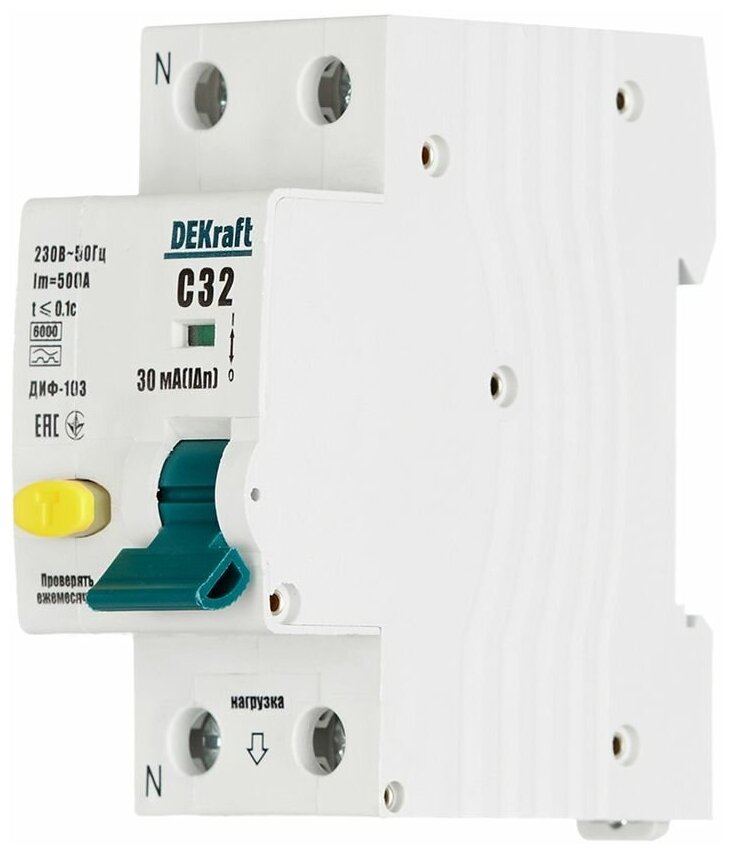Купить Dekraft Дифференциальный автомат (АВДТ) 1Р+N 32А 30мА тип A х-ка С ДИФ-103 6кА