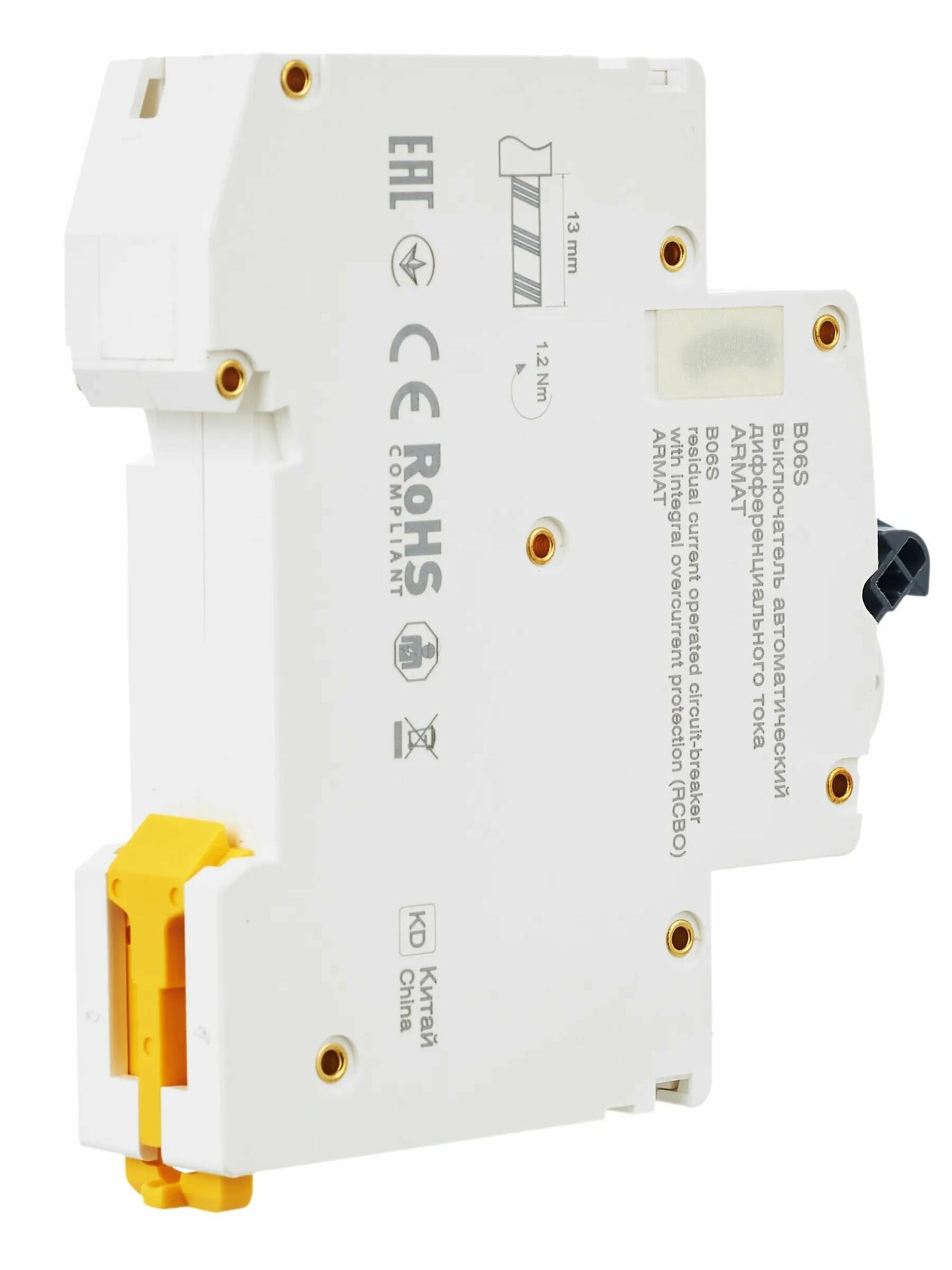 AR-B06S-1N-C20C030 Дифференциальный автоматический выключатель IEK ARMAT B06S 1П+N 20А 30мА, тип AC, 6кА, C
