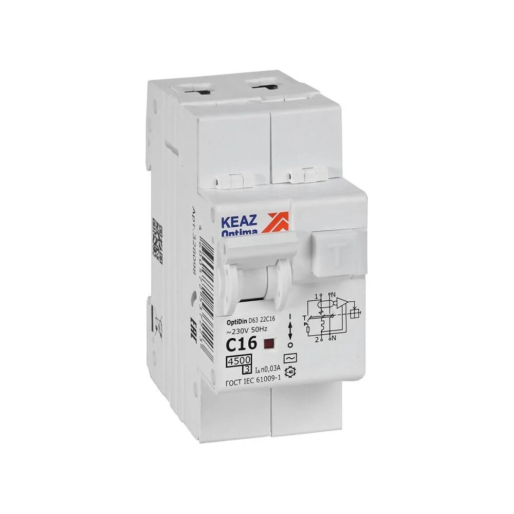 КЭАЗ АВДТ с защитой от сверхтоков OptiDin D63-22C16-AC-У3 (2P, C16, 30mA, 4,5кА)