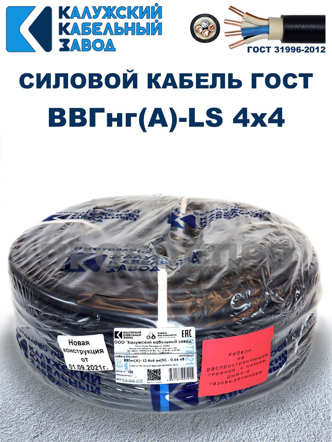 Силовой кабель ВВГнг(А)-LS 4х4 ГОСТ 50метров Калужский кабельный завод