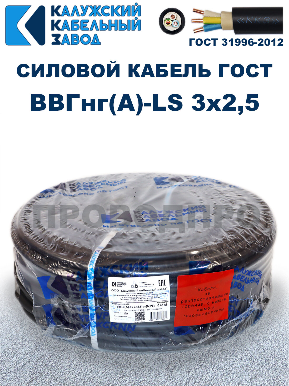 СохранитьКабель силовой ВВГнг(А)-LS 3х2,5 ГОСТ. 5 метров. Калужский кабельный завод интересное: