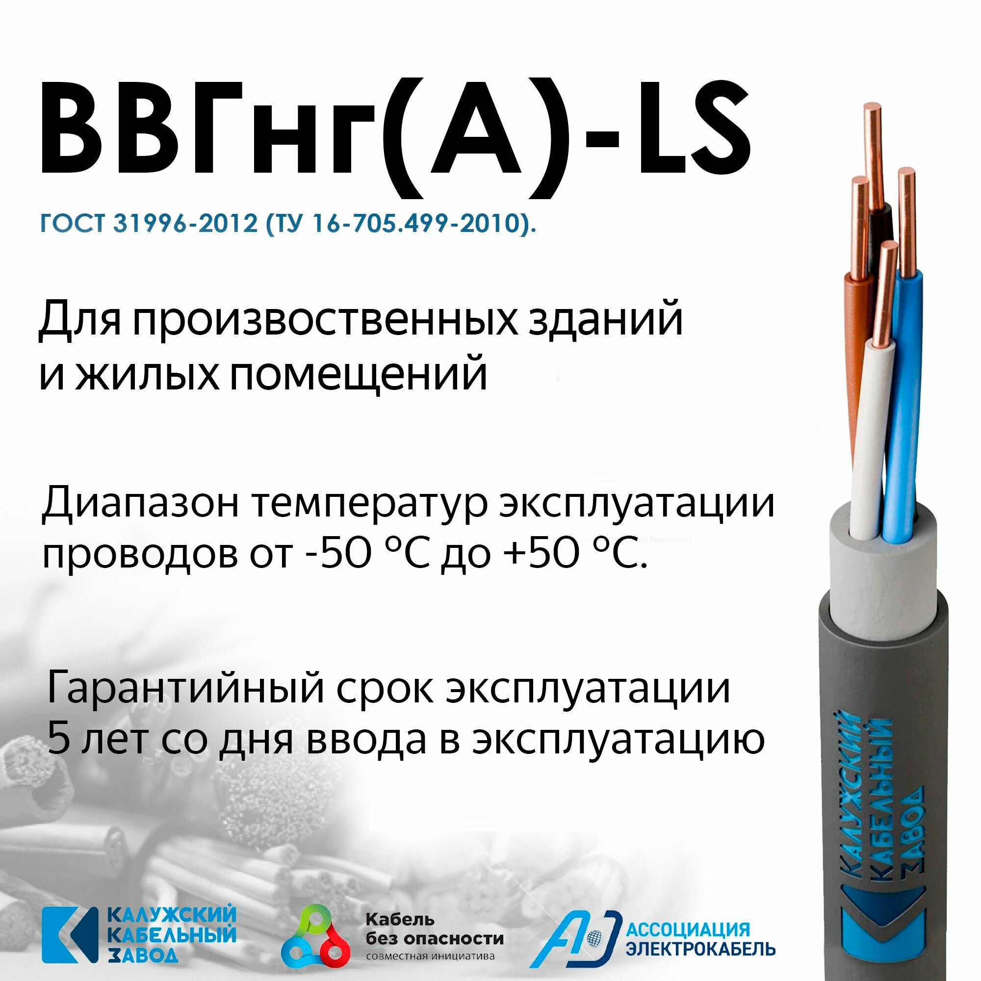 Силовой Кабель ВВГнг(А)-LS 4х2.5 ГОСТ 50метров Калужский кабельный завод