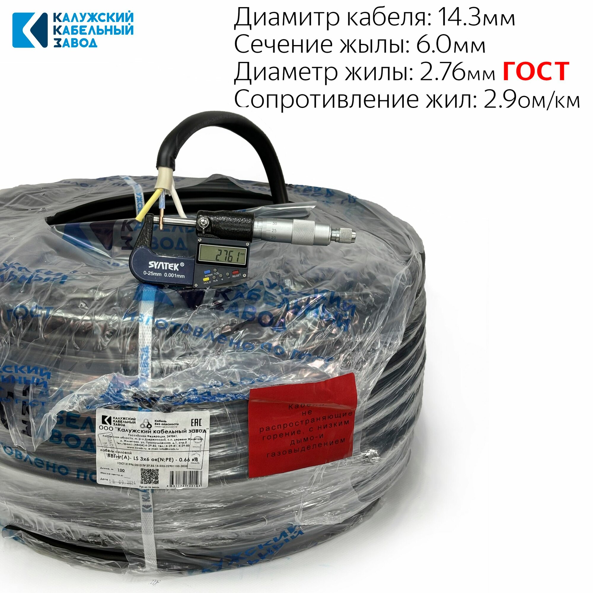Кабель ВВГнг(А)-LS 3х6,0 ГОСТ Калужский кабельный завод, 35 метров