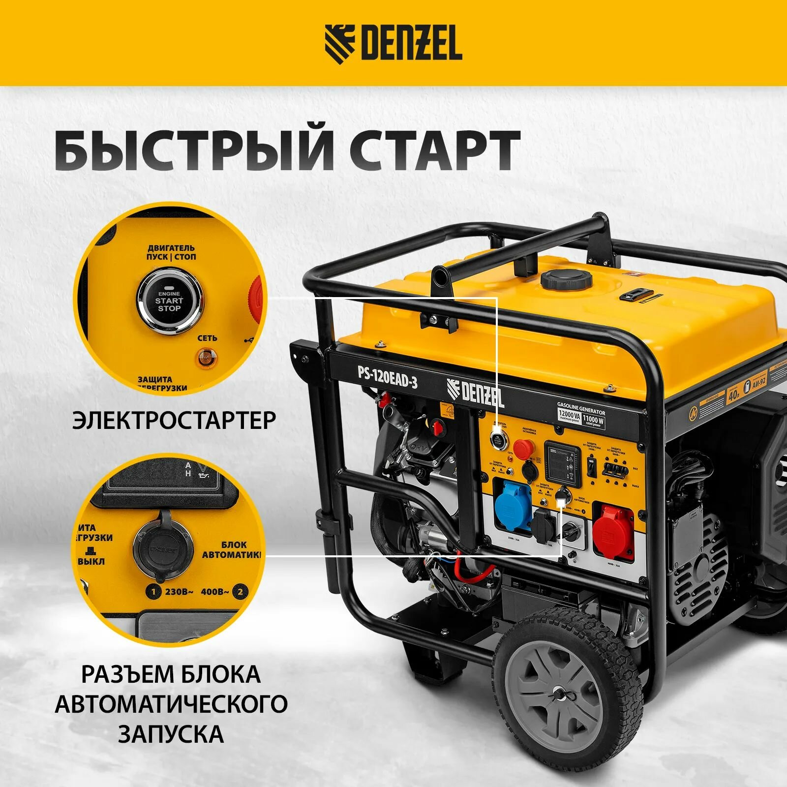 Генератор бензиновый PS-120EAD-3, 12 кВт,230/400 В, 40л, разъём ATS, перекл. режима, эл. старт Denzel 946984 интересное: