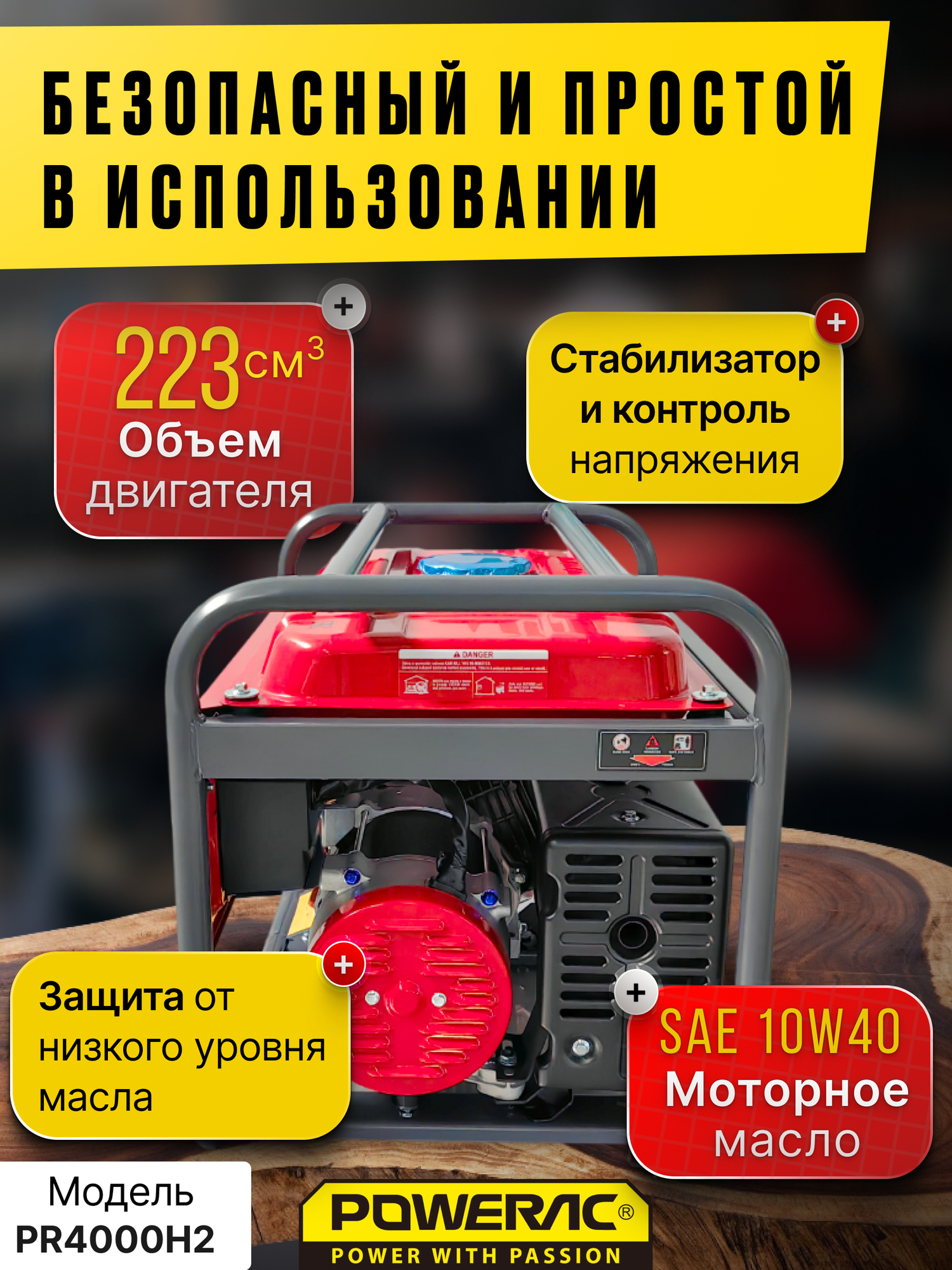 СохранитьГенератор бензиновый электрический Powerac PR4000H2 (3.2 кВт, 220В, 7л. с, РУЧНОЙ СТАРТЕР) интересное: