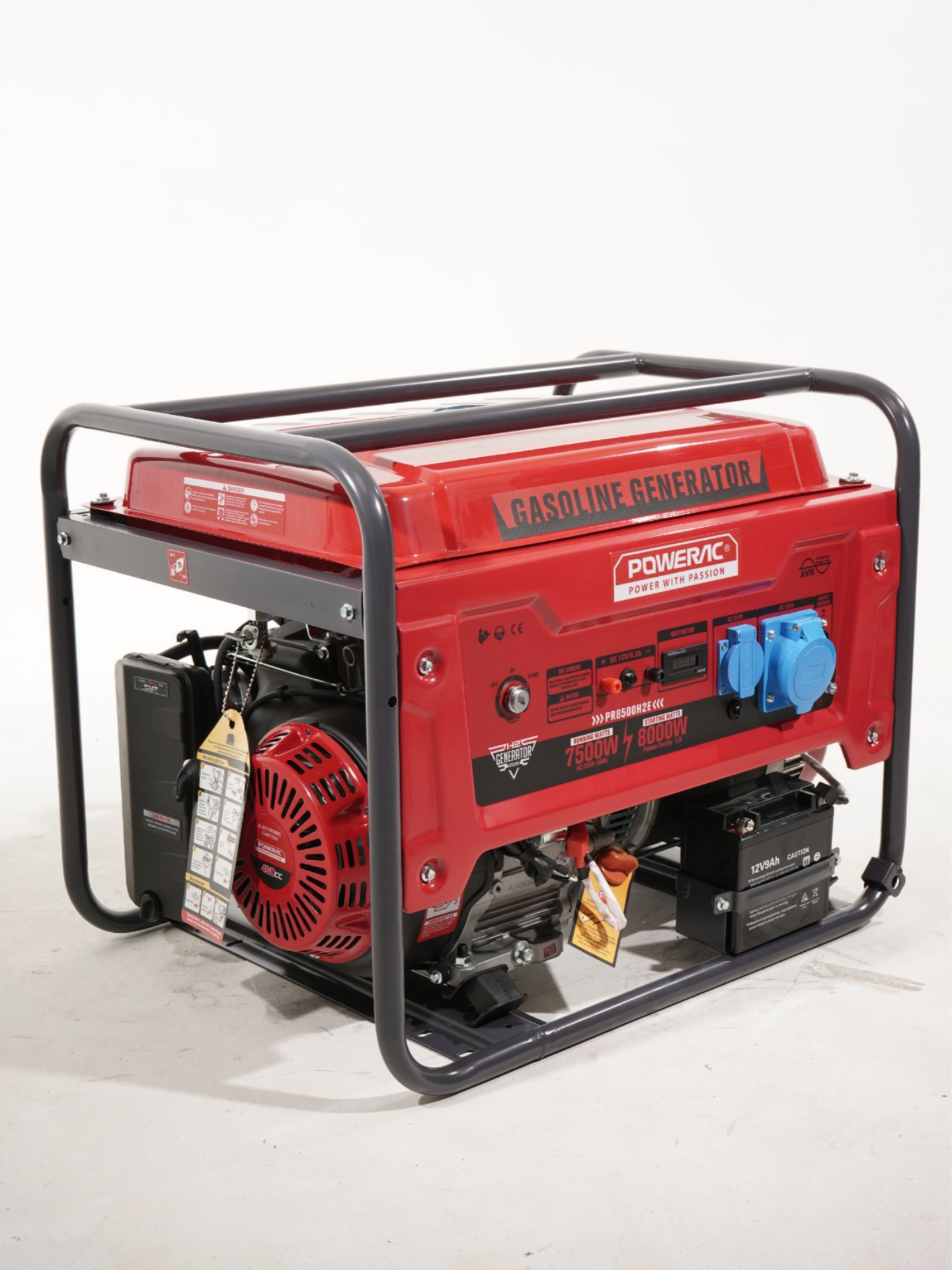Генератор бензиновый электрический Powerac PR7500H2E (6.5 кВт, 220В, 15л. с, ЭЛЕКТРОСТАРТЕР + АКБ)
