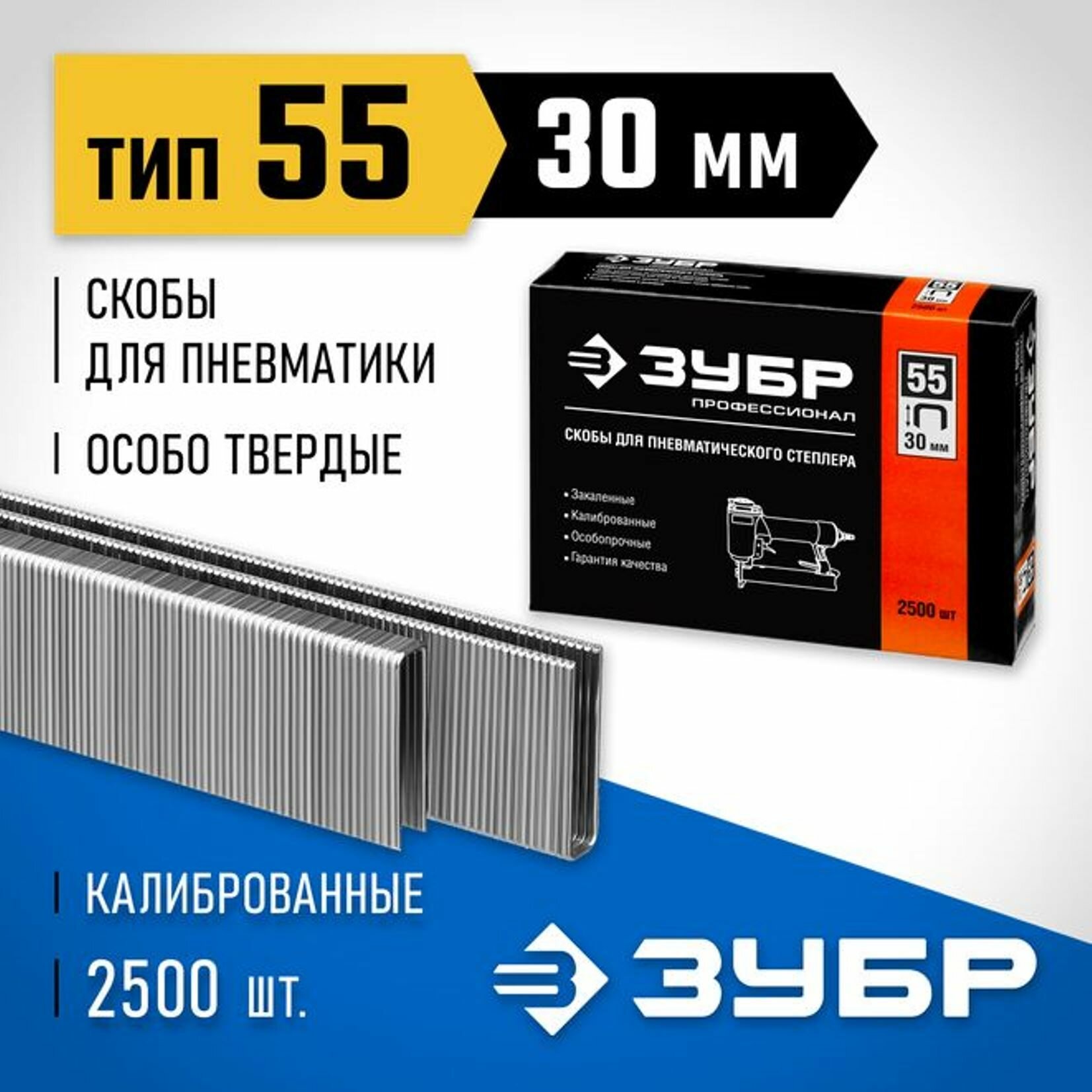 Купить Особотвердые тонкие скобы ЗУБР Профессионал широкие, тип 55, 30 мм, 2500 шт. 31855-30