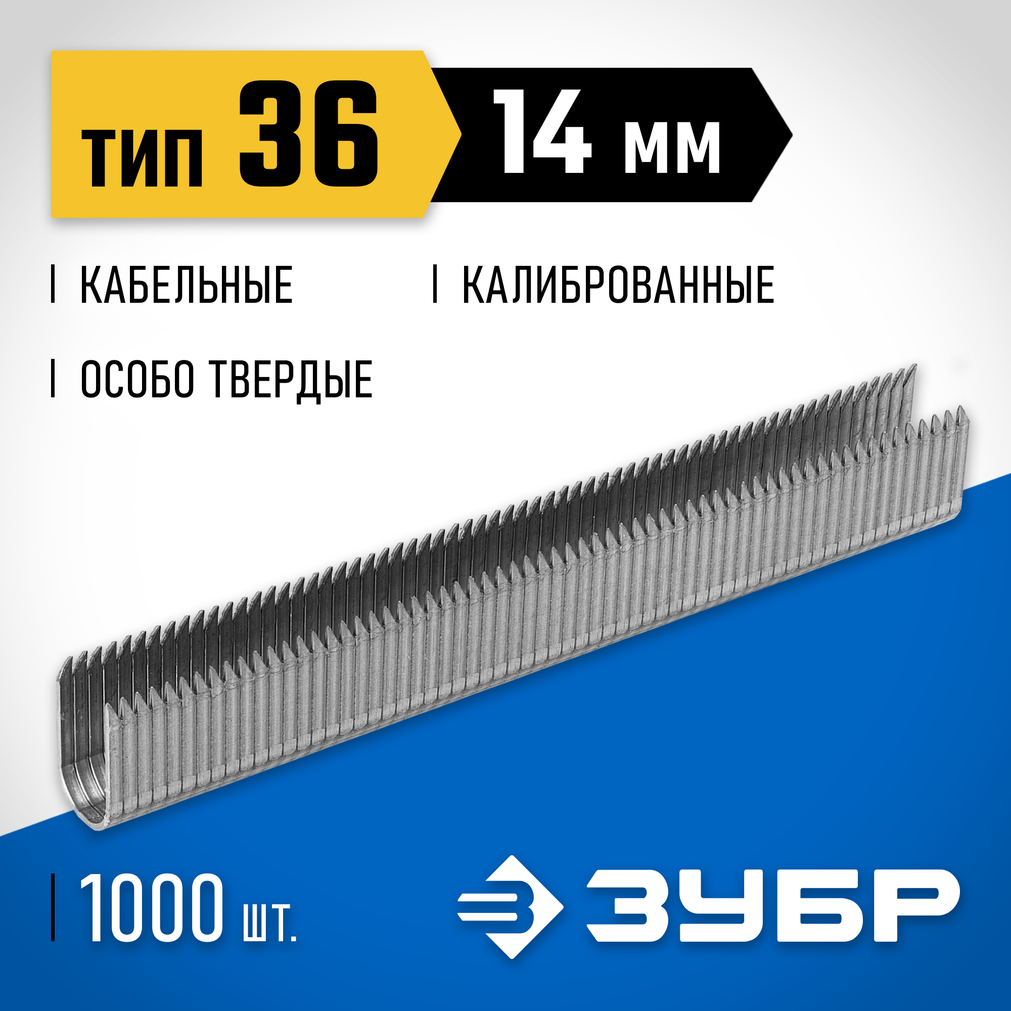 ЗУБР тип 36 (L) 14 мм, 1000 мм, калибр 20GA, скобы кабельные для степлера, Профессионал (31612-14)