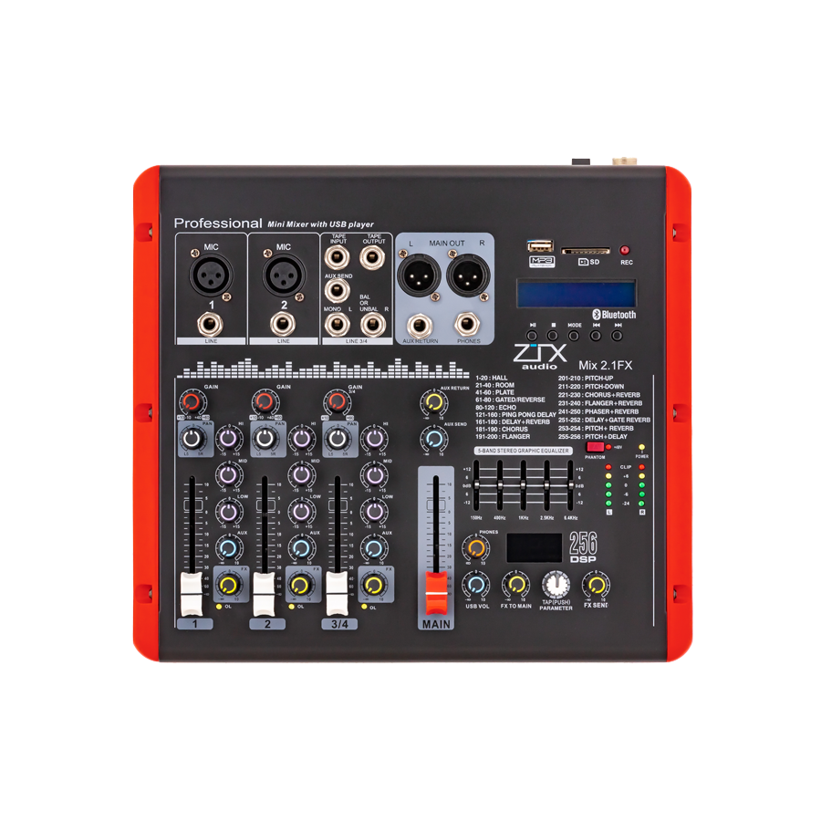 ZTX audio Mix 2.1. Fx - Микшерный пульт 2mono, 1stereo каналы с MP3/SD/DSP/BT интересное: